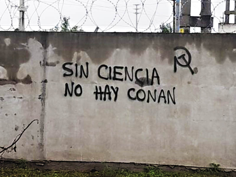 Casilda: dos jóvenes estudiantes detenidos en inusual operativo por pintar “Sin ciencia no hay Conan”