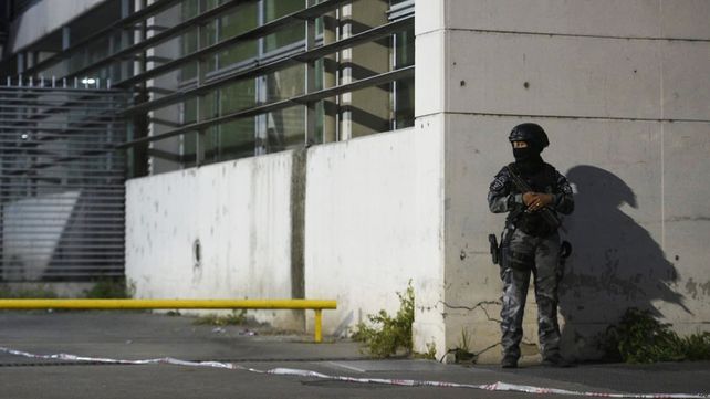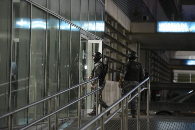 Tras la balacera, numerosos efectivos policiales con armas largas están custodiando el Hospital de Emergencias.