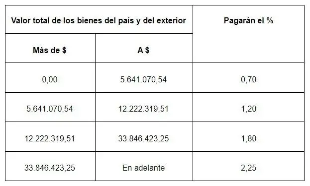 En tanto, para los bienes situados en el exterior, el valor a pagar se establecerá según la siguiente escala:
