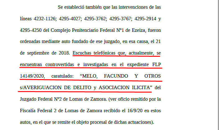 Y en Lomas de Zamora, en la causa que Stornelli llama “bola de moco”, se están investigando esas escuchas ilegalmente hechas y desgrabadas por quien no estaba autorizado.