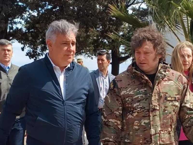 Luciendo ropa de fajina, Milei supervisó con el mandatario cordobés y sus funcionarios las tareas de asistencia y rescate por los incendios en las Sierras. Posteriormente sobrevolaron los incendios, que llevan arrasadas más de 16 mil hectáreas.