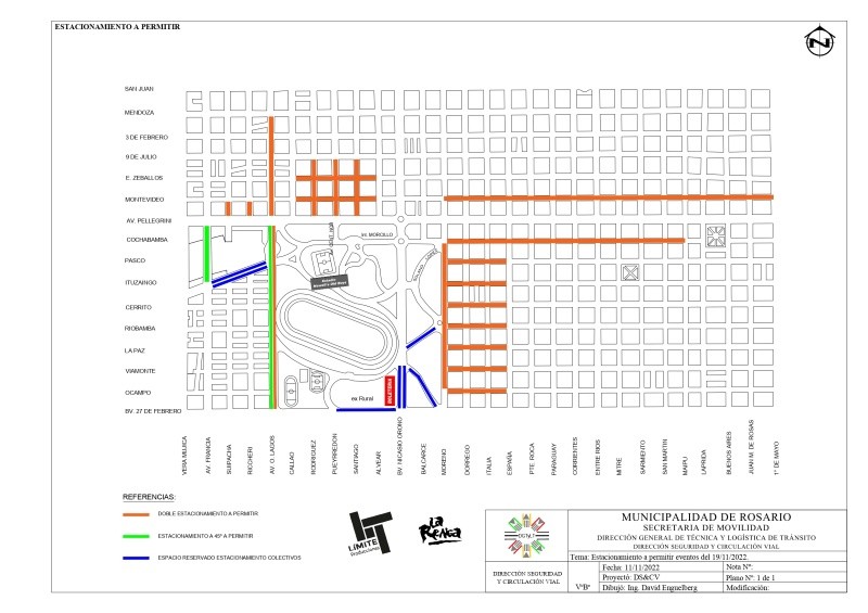 Finalmente, el doble estacionamiento a permitir ocupará: Av. Ovidio Lagos desde Bv. 27 de Febrero hasta Av. Pellegrini y desde Av. Pellegrini a Mendoza; Suipacha y Ricchieri desde Av. Pellegini a Montevideo; Rodríguez, Pueyrredón y Santiago desde Av. Pellegini hasta 9 de Julio; Montevideo y E. Zeballos desde Callao hasta Alvear; Montevideo desde Moreno hasta 1º de Mayo; Cochabamba desde Moreno hasta Maipú; Pasco, Ituzaingó, Cerrito, Riobamba, La Paz, Viamonte y Ocampo desde Moreno a España; y calle Moreno desde Ocampo hasta Pasco.