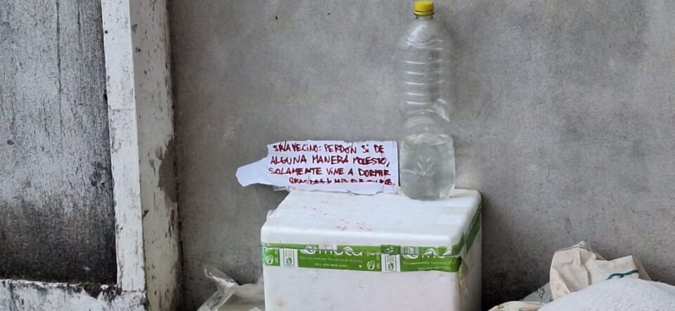 El tipo pide disculpas: «Sr. Vecino/a: Perdón si de alguna manera molesto, solo vine a dormir. Disculpe las molestias». No hay errores de ortografía, la letra no tiene el temblor del que no escribe. Lo escribió en una hoja rayada de cuaderno A4 con fibrón rojo.
