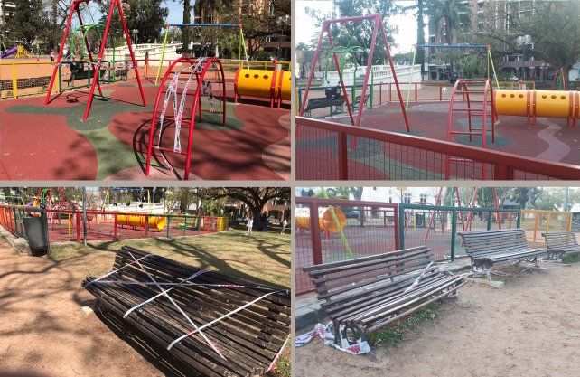 Este sábado diversos espacios públicos de la ciudad, donde suelen concurrir los santafesinos, amanecieron con zonas restringidas. Los juegos para niños y los bancos de plazas y parques aparecieron con fajas de seguridad.
