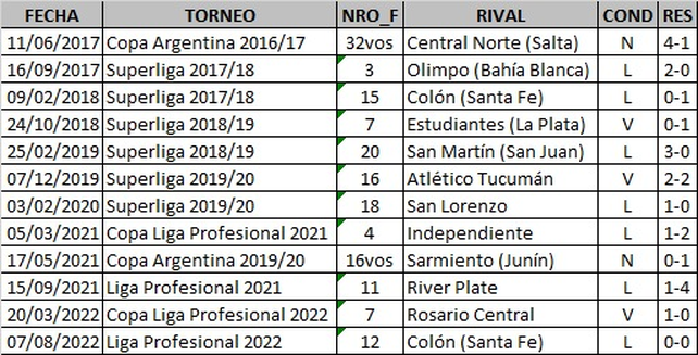 A Newell’s lo dirigió 12 veces. Los rojinegros ganaron 5 partidos, empataron 2 y perdieron 5 (15 goles a favor y 12 en contra). Expulsó 4 futbolistas rojinegros y uno de los rivales. Sancionó 5 penales a favor de los leprosos y ninguno en contra. Este es el detalle.