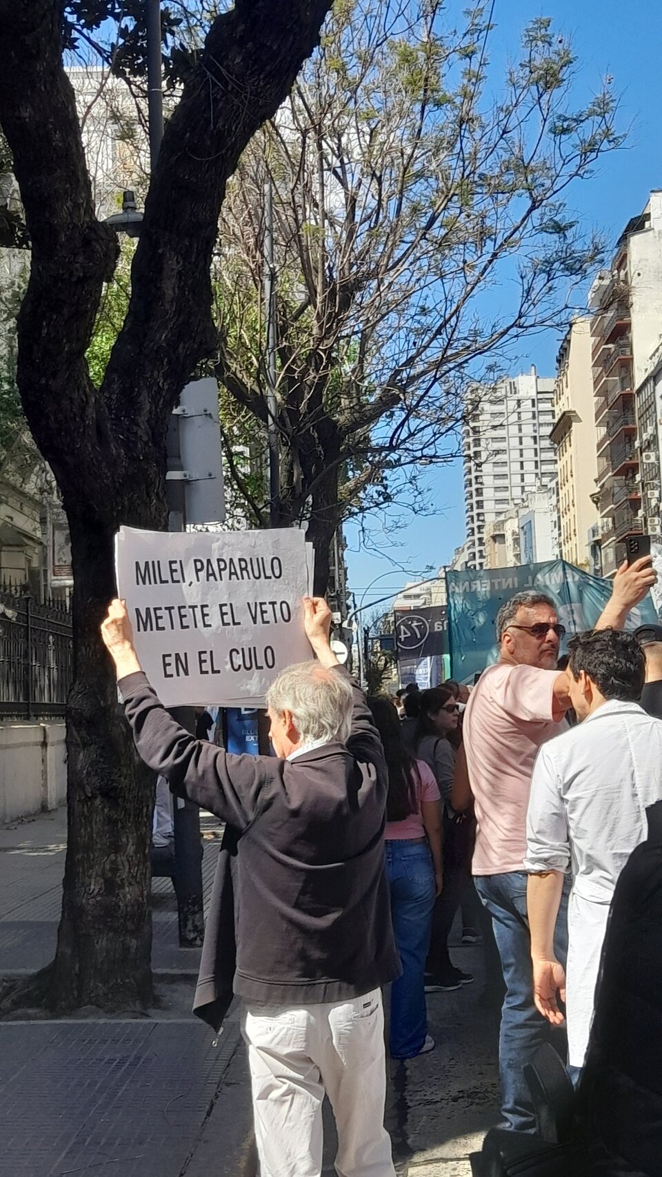 Miles de estudiantes, docentes universitarios, no docentes, jubilados y ciudadanos de distintas edades se manifestan en la tarde de este miércoles contra el veto ya anunciado por Javier Milei a la Ley de Financiamiento Universitario. En esta nueva edición de la Marcha Federal Universitaria, la población expresó su descontento con las medidas adoptadas por la gestión libertaria, -donde la educación parece quedar en último lugar -, con creativos carteles y pancartas.