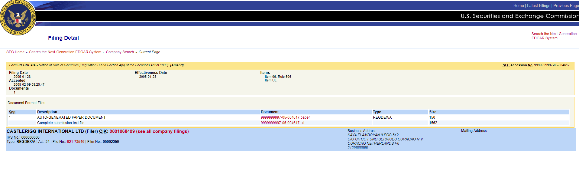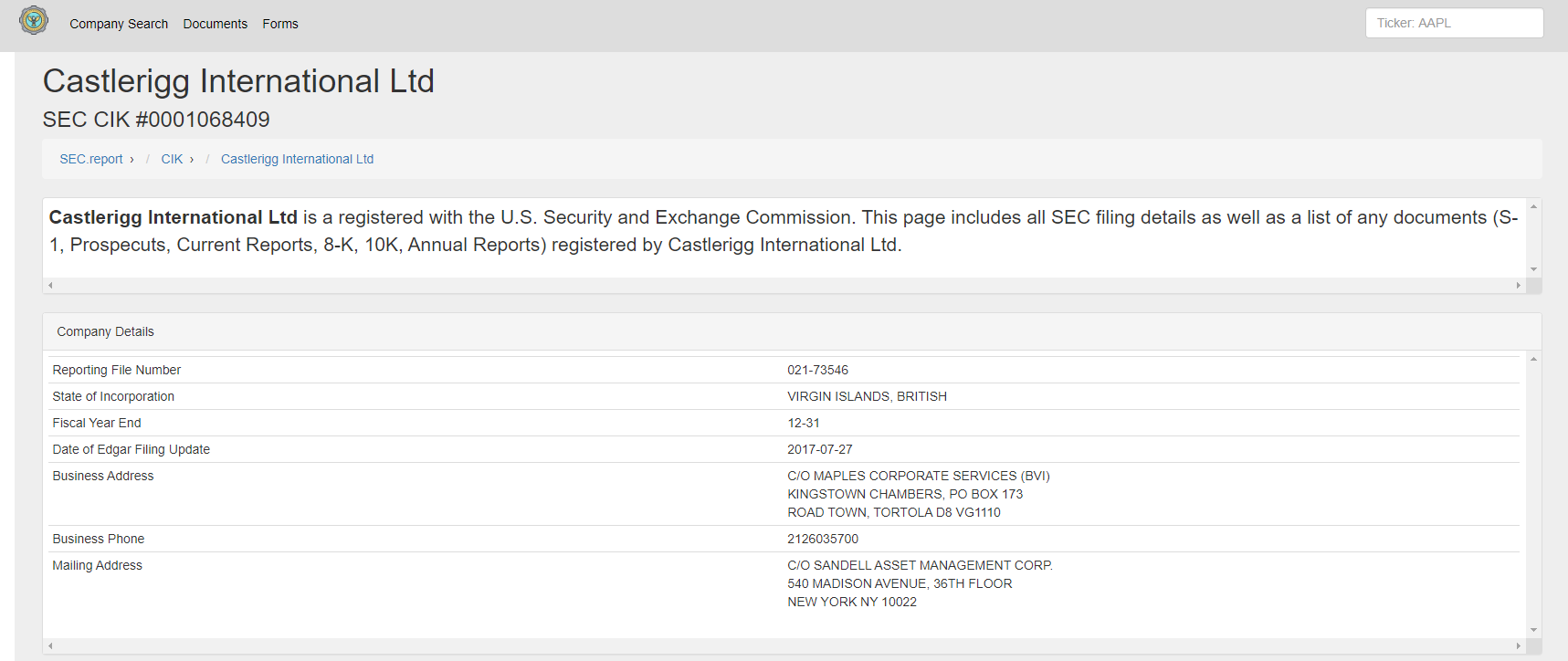 Sede de Castlerigg International Limited en las Islas Vírgenes