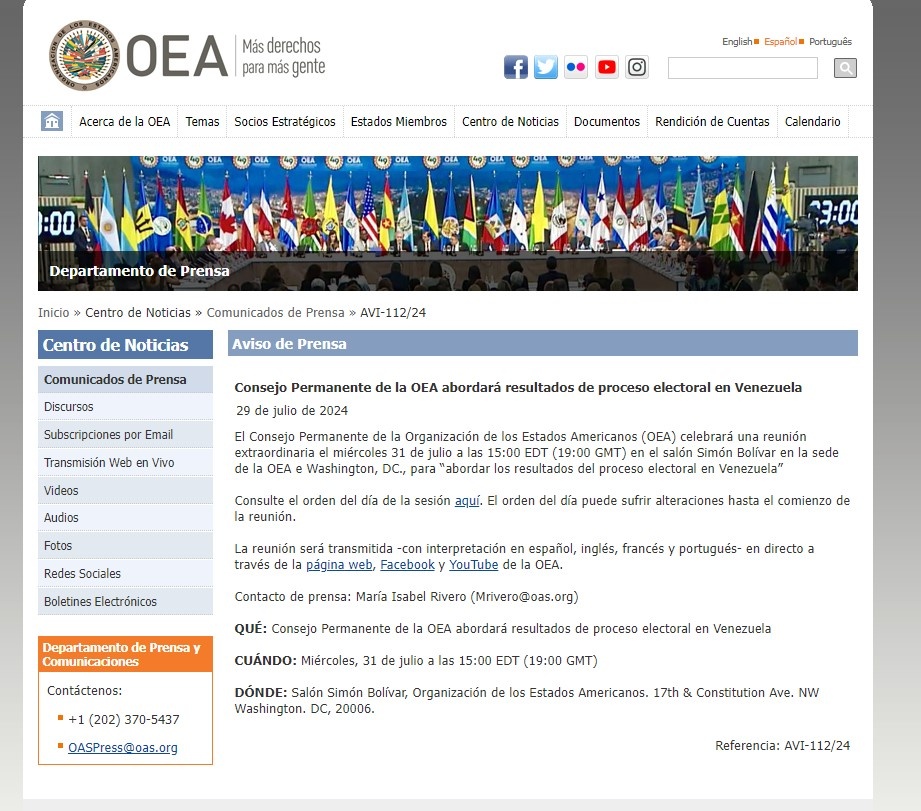 LA OEA CONVOCA A UNA REUNIÓN EXTRAORDINARIA PARA ABORDAR EL PROCESO ELECTORAL