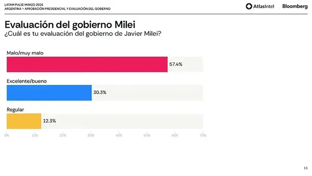 En concreto, un 65% de la población cree que la economía está mal, más del 50% tiene una expectativa negativa para el próximo semestre y un 57% hace una evaluación mala sobre la gestión mileísta.