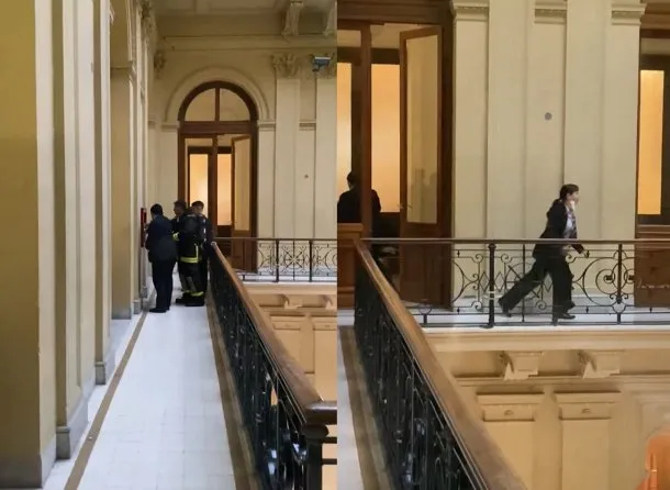 Aparentemente, se habría tratado de un cortocircuito en un tablero de la cocina. Bomberos trabajan en apagar un principio de incendio.