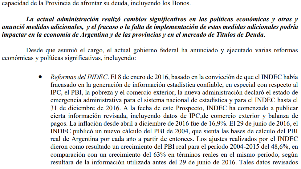 “No se puede predecir el impacto que tenga cada una de estas medidas, o cualquier otra medida futura que pueda ser tomada por el gobierno de Macri, ni asegurarse la capacidad del gobierno de Macri para implementar todas las medidas anunciadas”, se había atajado Vidal en 2017.