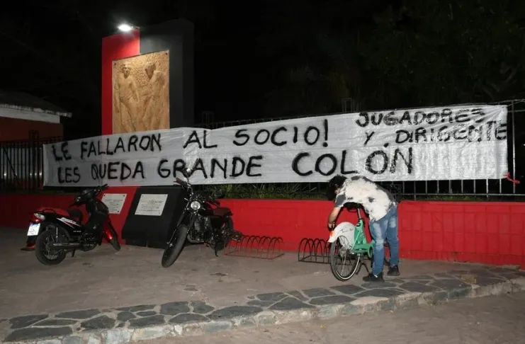La crisis futbolística que atraviesa Colón sumó este martes un nuevo capítulo. Un pequeño grupo de hinchas se congregó frente a la sede del club y colgó una bandera en señal de protesta contra el plantel y la dirigencia, a raíz de las malas actuaciones del equipo en la Primera Nacional.