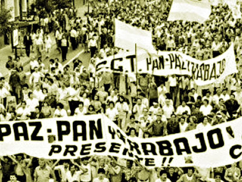 El dirigente cervecero, que contaba con el apoyo del histórico e influyente líder metalúrgico, Lorenzo Miguel, dispuso la organización de esa protesta obrera, convocada bajo el lema de por “Paz, Pan y Trabajo, en medio de un contexto de caída generalizada del poder adquisitivo de los trabajadores.