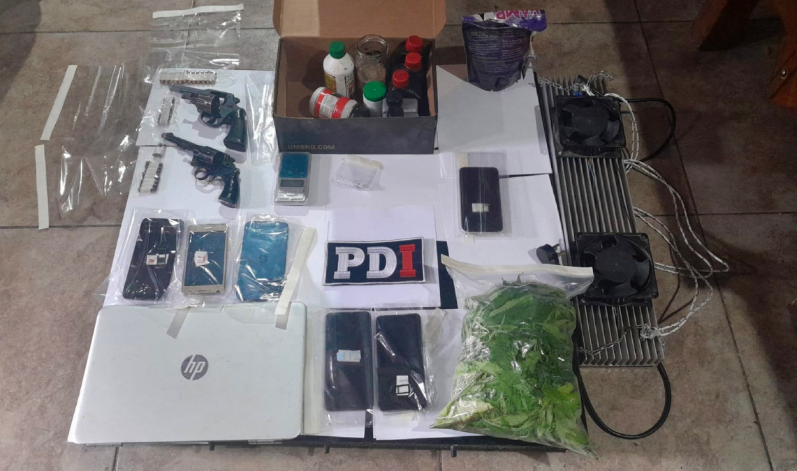 El operativo, ejecutado por agentes de la Policía de Investigaciones (PDI), culminó con la detención de cuatro personas detenidas y el secuestro de material estupefaciente, armas, celulares y otros elementos.