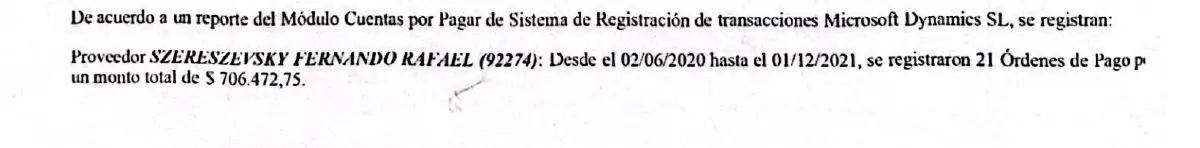 Según se indica en el documento al que accedió El Destape, en la auditoría presentada el 26 de enero del 2022, el funcionario de Capital Humano quedó en la mira por 21 órdenes de pago emitidas entre el 2 de junio del 2020 y el 1° de diciembre del 2021.
