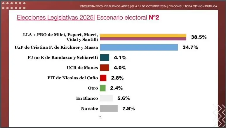 Como sea, los cuatro puntos que no capitaliza LLA+ PRO se los quedan entre el peronismo federal y el radicalismo, los indecisos y la opción «otros».
