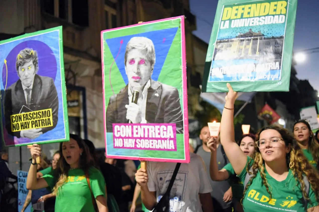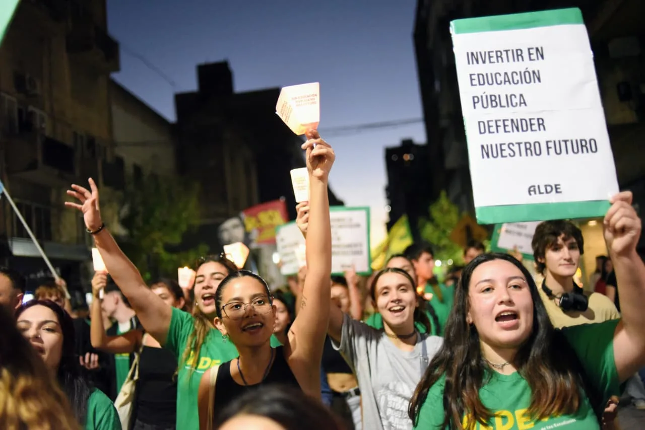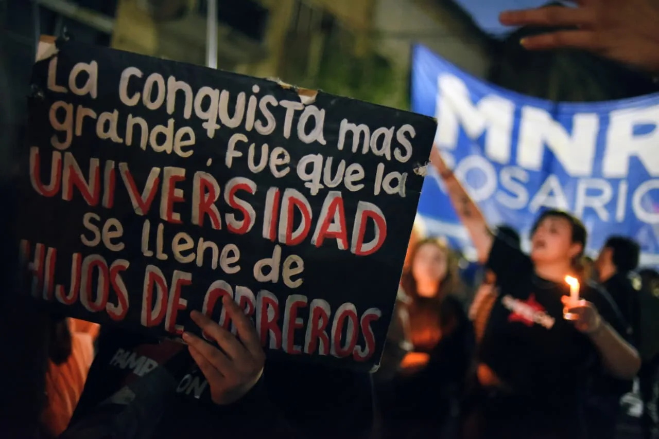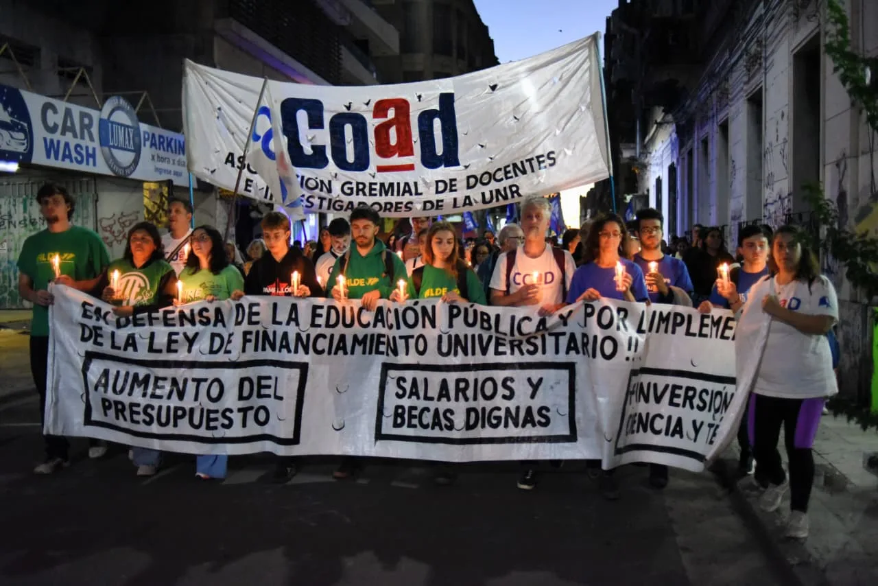 Este jueves, estudiantes, docentes y no docentes de la Universidad Nacional de Rosario se movilizaron desde la plaza San Martín a la plaza 25 de Mayo para reclamar por el cumplimiento de la ley de financiamiento universitario, que fue aprobada por el Congreso de la Nación y reglamentada hace seis meses.