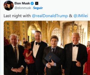 Desde el escenario Trump elogió el «trabajo fantástico» que Milei realizó «en un lapso muy corto» para «hacer grande de nuevo a la Argentina». También encomió el discurso que había pronunciado el Presidente argentino, aunque sólo escuchó sus últimas palabras porque llegó poco antes de que una asistente le cortara el micrófono y lo sacara del brazo como la enfermera que le cortó las piernas a Maradona. No pudo terminar su afirmación sobre «unirnos para formar una alianza de naciones libres, custodios del legado occidental». Esta vez tampoco pudo hablar con Trump más de un par de minutos, de dorapa en medio de la multitud. Pero la repercusión en los mercados financieros fue inmediata: cayeron el riesgo país y la cotización del dólar blue y el Banco Central pudo cerrar una semana de compras.