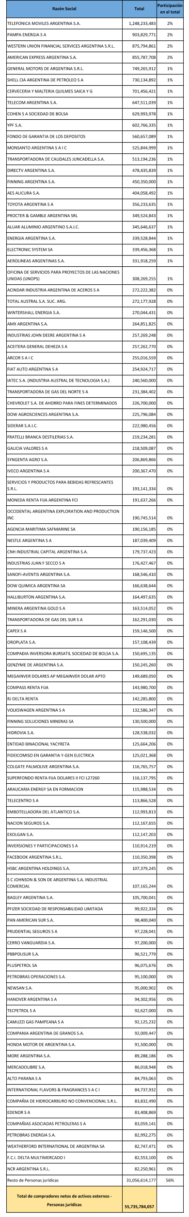 En el informe del domingo 17 dijimos que el Grupo Clarín, Techint, Arcor, Pampa Energía y Aceitera General Deheza figuran en ese pelotón de punta entre quienes sacaron del país 86.000 millones de dólares, con “una notable concentración en unos pocos actores económicos”, según el informe publicado por el Banco Central.