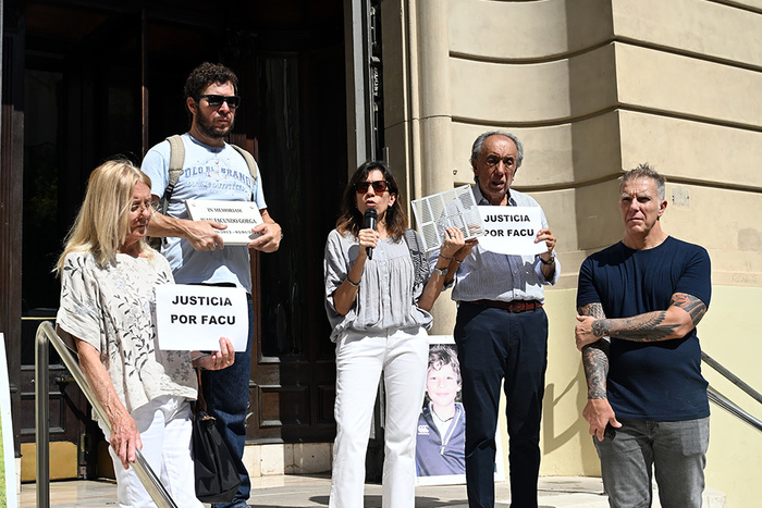 El clamor de justicia por Facundo Gorga se hizo visible ayer en pleno centro con el mitín que convocaron familiares y amigos del niño que murió atrapado en la pileta del Jockey Club, por una causa penal que hasta ahora corta el hilo por lo más delgado: la fiscal Mariela Oliva imputó a empleados por la responsabilidad que devino en homicidio culposo, pero no avanzó sobre ninguno de los directivos de la entidad. Y eso es lo que exigieron ayer los convocados frente a la sede social, en la vieja esquina de Córdoba y Maipú. Como elemento extra de presión, se hizo presente el conductor de radio y TV Alejandro Fantino, quien se sensibilizó con el caso y también exigió la renuncia e imputación penal del presidente del Jockey, Charles Roberts.