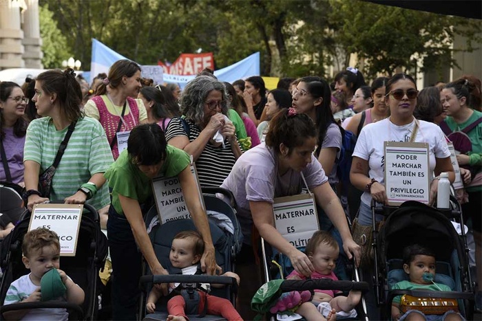 Así fue como se juntaron en una primera asamblea, decidieron marchar con cochecitos y la bandera Maternar es Político. «Nos queríamos organizar teniendo en cuenta las infancias, cómo van a marchar esas infancias porque el ruido les puede hacer mal, porque hay que cambiar pañales en el medio y toda una cuestión práctica y de logística, que también es política», cuenta Agustina.