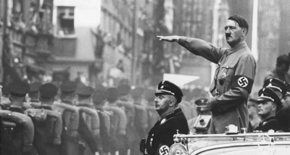 Desfile nazi liderado por Adolfo Hitler. El nacionalismo y la xenofobia llevados al peor de los extremos.