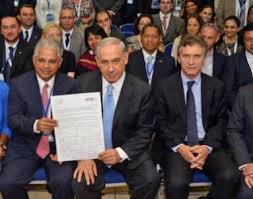 En enero de 2016, ya como Presidente, Macrì volvió a encontrarse con Netanyahu en el foro patronal de Davos, donde acordaron la cooperación israelí en tecnología de inteligencia y seguridad. Modi Ephraim, subdirector del Departamento de América Latina y el Caribe de Israel, le dijo a la Agencia Judía de Noticias (AJN) que la cita con Macrì era la más importante para Netanhayu en Davos. También encomió a Nisman, expresó que Macrì sería el mejor aliado del gobierno de Netanyahu en América y anunció una ola de inversiones de empresas israelíes. Como se sabe, Macrì pagó al contado todo lo que reclamaban los fondos buitre, hasta la cuenta de sus abogados que litigaron contra la Argentina, e inició de ese modo el tercer ciclo de endeudamiento argentino que culminó en una catástrofe. La declaración de emergencia en seguridad permitió comprar los juguetes israelíes sin licitación.