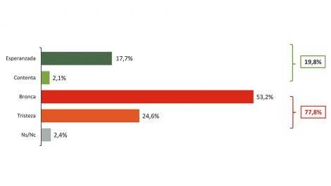 Según un sondeo del Centro de Estudios de Opinión Pública que publicó Página/12, el aumento el la proyección de votos para el Frente de Todos es consistente con el estado de ánimo de la población, ya que casi el 80% sienten bronca o tristeza por la situación actual contra un escaso 17,7 que mantiene la esperanza en el macrismo.
