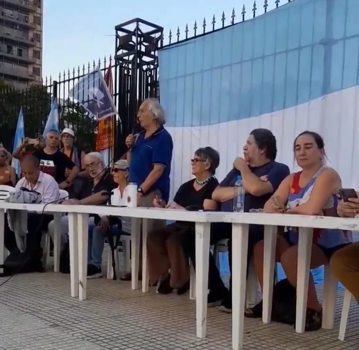 «La situación del país es grave. Los recursos de este país están en manos de grandes corporaciones. Un gobierno que no piensa en el pueblo, es un gobierno que lo traiciona», manifestó Pérez Esquivel, micrófono en mano.