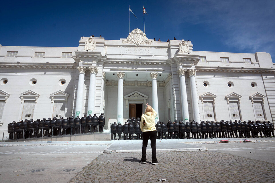 Pero los gremios también van a acudir a la justicia por la manera en la que se votó la reforma previsional, en medio de los apurones y dejando dudas entre ausentes y los que realmente se abstuvieron en el recinto. En una jugada de pizarrón, el diputado Farías interrumpió a otro legislador que estaba hablando y aseguró que las puertas de la Legislatura estaban cediendo a la presión de los manifestantes. Rápidamente, la presidenta de la Cámara, Clara García llamó a considerar la moción de orden para votar la ley por títulos y en un minuto se aprobó la iniciativa que ya venía con media sanción del Senado.