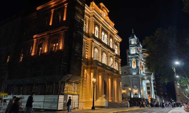 Desde las 19.30, todas las luces de la fachada de la mítica cuadra de Buenos Aires al 700 quedaron encendidas al tiempo que hubo un cruce entre las campanas del Palacio Municipal y de la Catedral.