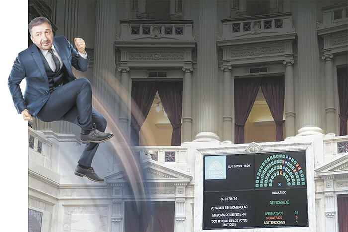 En el mientras tanto, los senadores hacían tiempo en sus bancas. «¿Y? ¿Qué van a hacer? Lo que tengan que hacer háganlo de una vez», le espetó Juliana Di Tullio a Eduardo Vischi, jefe de bloque radical, cuando entraba en el recinto a hablar con un senador y se volvía a retirar. UxP estaba nervioso: desde la noche anterior, los ánimos habían mutado de la convicción absoluta de ir a una batalla perdida a la realización de que podrían anotarse un verdadero triunfo. Sabían que parte del PRO acompañaría, pero desconfiaban de los radicales. Solo unos pocos se habían quedado en sus bancas, como Blanco, y temían que Villarruel lograra darlos vuelta a último momento.