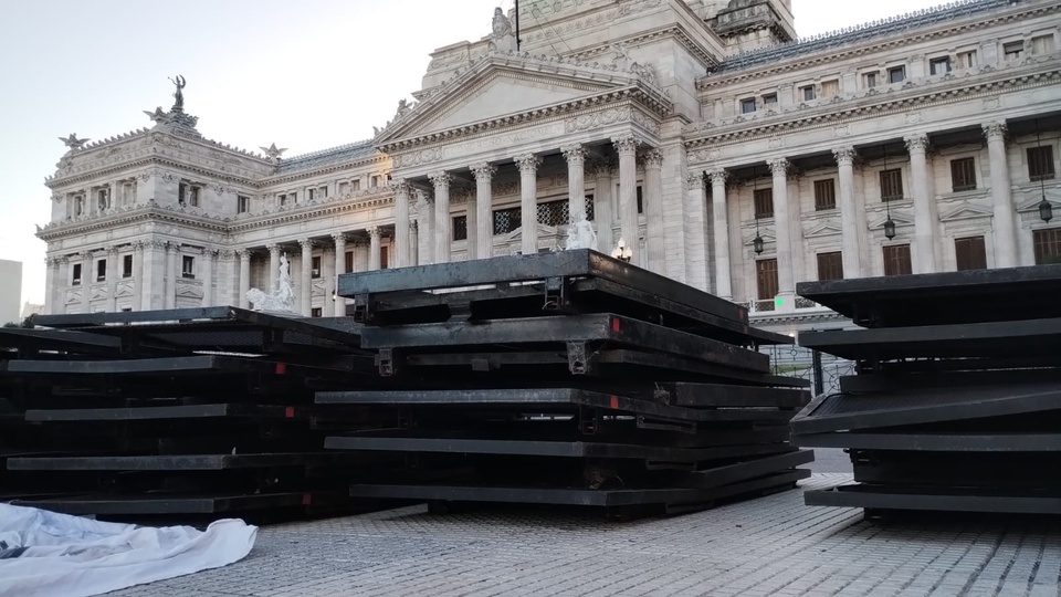 COMIENZAN A «BLINDAR» LA ZONA DEL CONGRESO CON VALLAS