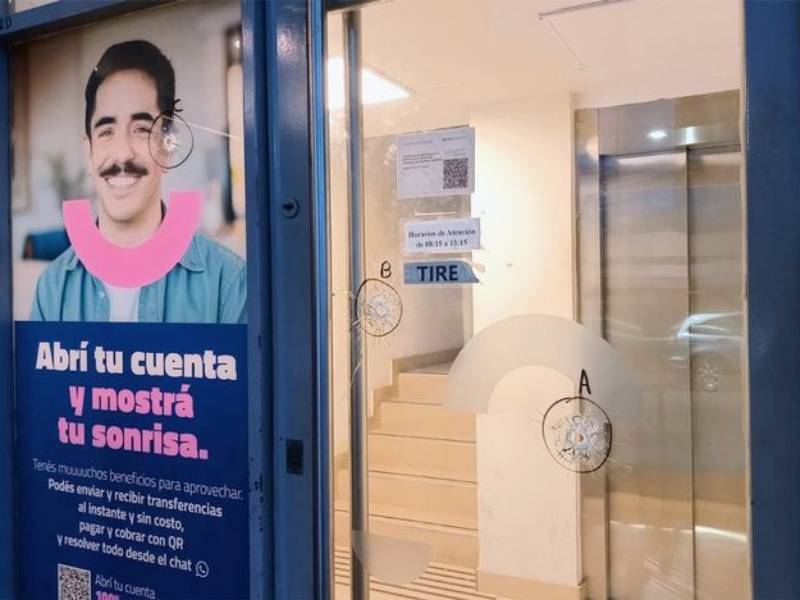 Este martes en horas de la tarde una sucursal del Banco Macro de zona sudoeste fue baleada por dos atacantes que se movilizaban en moto. Los peritos constataron cuatro impactos de bala y encontraron una nota amenazante dirigida al gobernador Maximiliano Pullaro