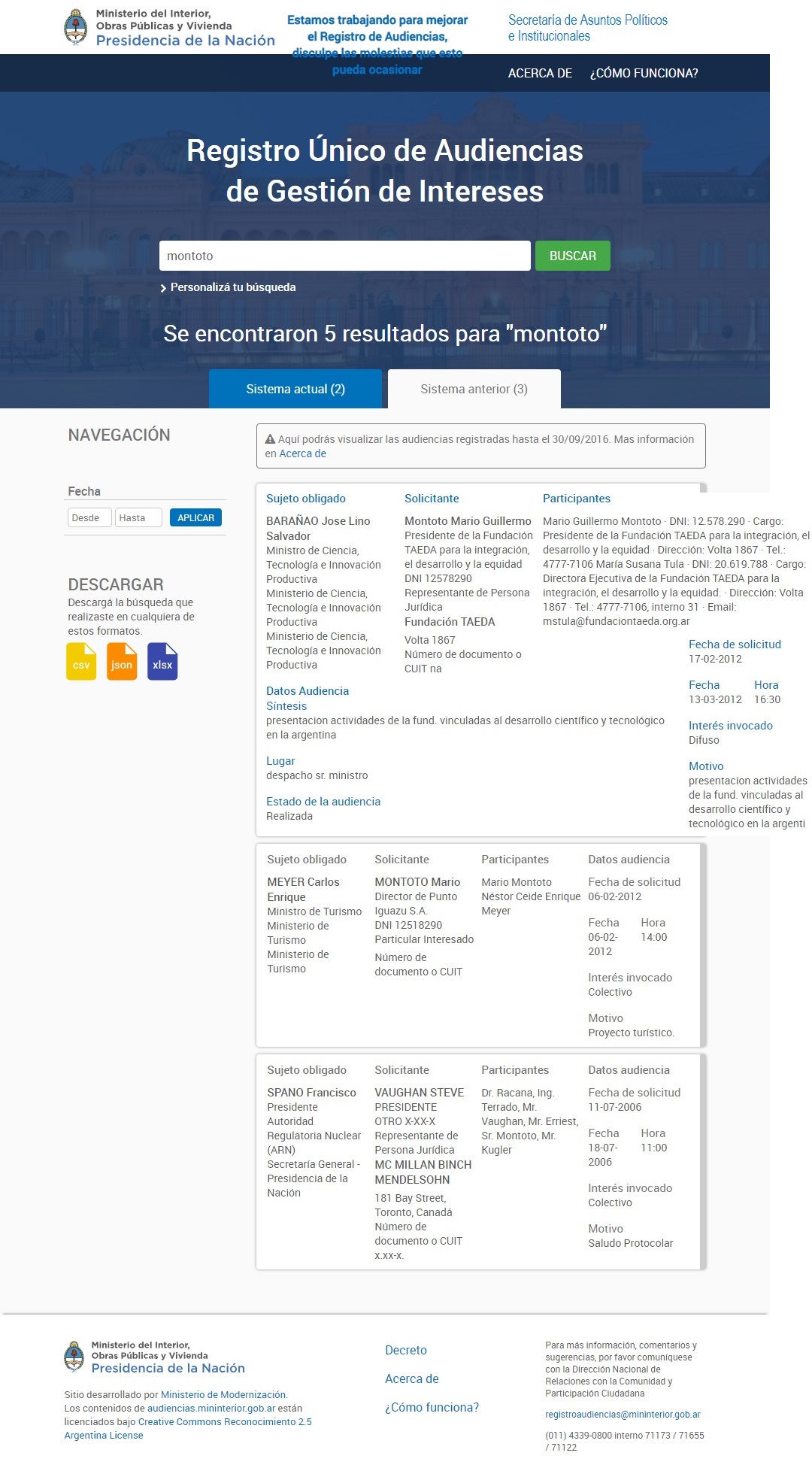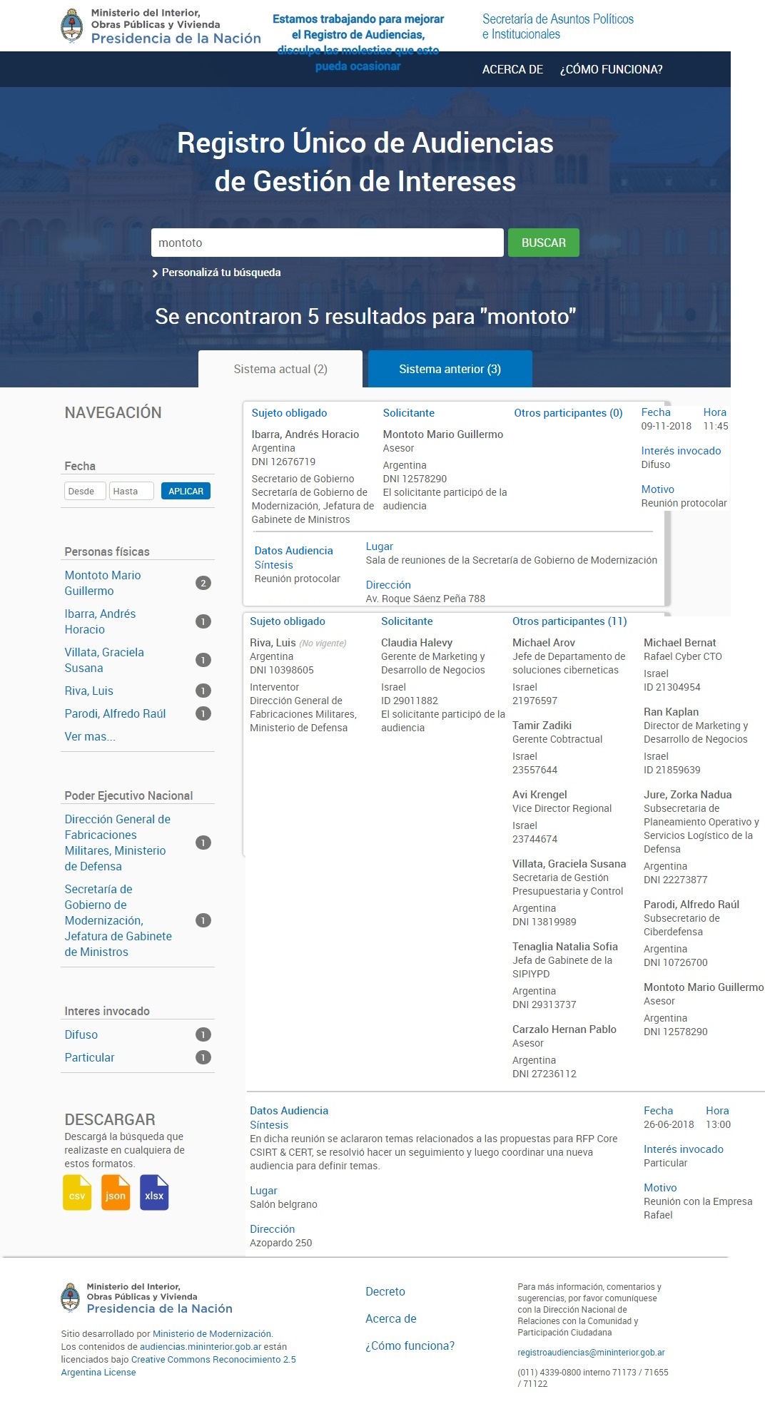 El 9 de noviembre, poco tiempo antes que El Cohete a la Luna difundiera los primeros informes del caso D`Alessio/Stornelli, Montoto participó de otro revelador encuentro, esta vez junto a Andrés Ibarra de la actual Secretaria de Modernización del Estado. El carácter de la reunión, consignado por el registro único de audiencias del Ministerio del Interior, informa que fue difuso.