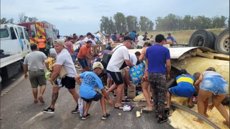 Fue entonces que en cuestión de minutos comenzaron a arribar decenas de vecinos que rodearon la escena del choque, y mientras las autoridades llevaban adelante el corte total de la ruta durante varias horas, empezaron el saqueo.
