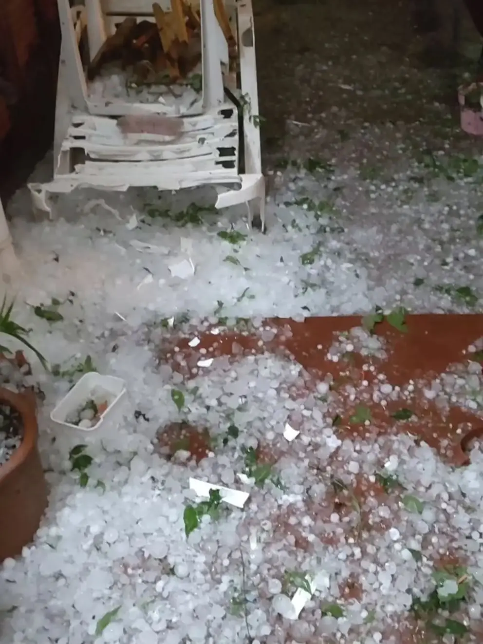 Las redes se llenaron de mensajes de vecinos que no salían de su asombro y publicaron las fotos y videos relacionados con los trozos de hielo que cayeron durante la madrugada. Varios de ellos del tamaño de una pelota de tenis.