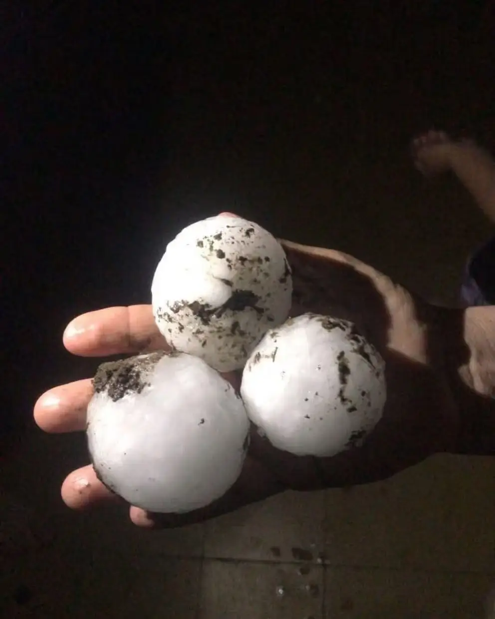 Las redes se llenaron de mensajes de vecinos que no salían de su asombro y publicaron las fotos y videos relacionados con los trozos de hielo que cayeron durante la madrugada. Varios de ellos del tamaño de una pelota de tenis.